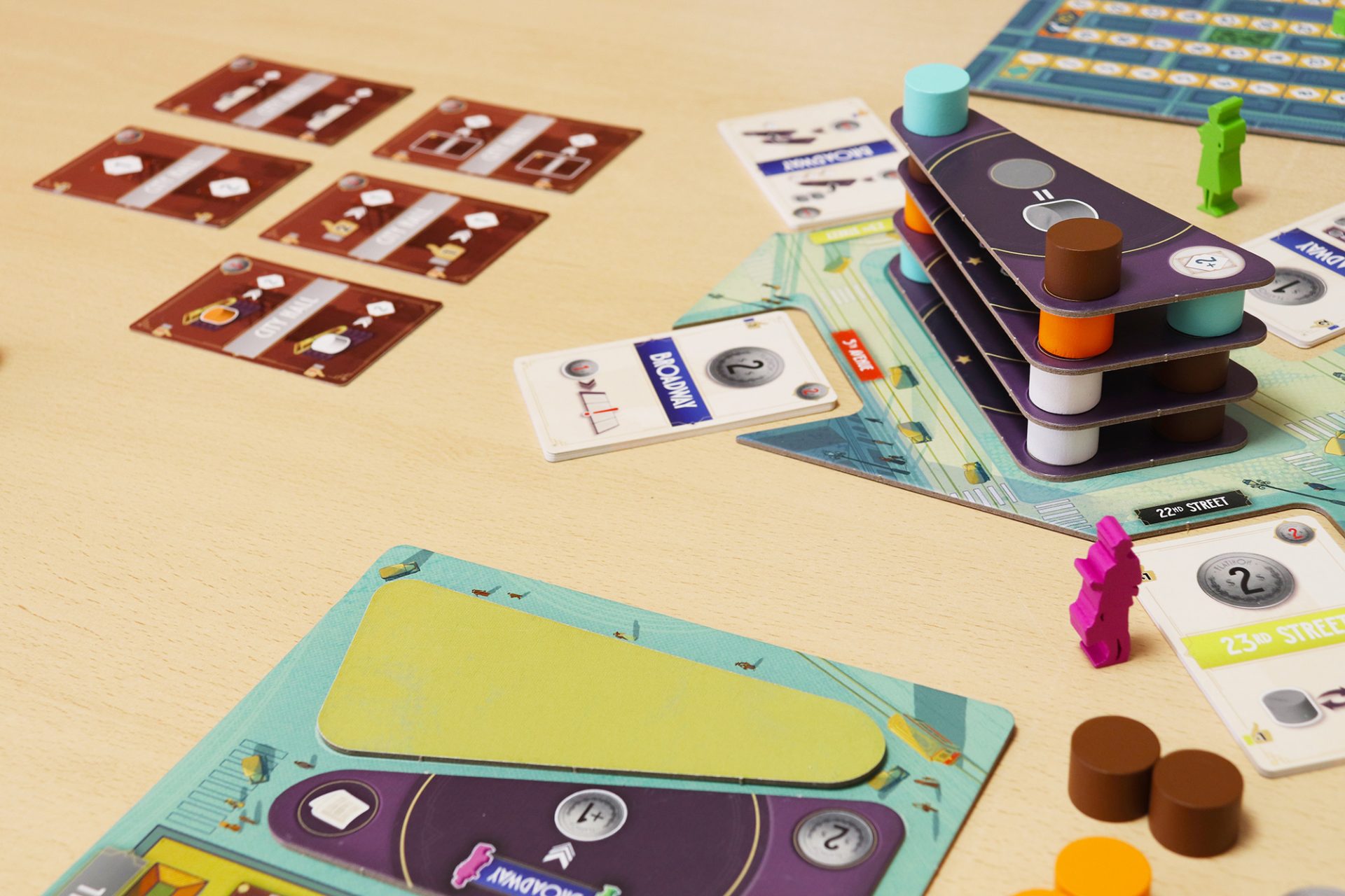 En Flatiron , viajarás a la Gran Manzana para participar en la construcción de este emblemático edificio. Tanto tú como tu oponente deberán desarrollar sus empresas añadiendo nuevas cartas a su tablero personal, lo que les permitirá realizar más y mejores acciones en cada una de las calles circundantes. El objetivo final es ganar más puntos que tu oponente, principalmente realizando tareas de construcción, pero también manteniendo una imagen pública impecable y cumpliendo con los decretos del Ayuntamiento de Nueva York. Cuando el techo esté colocado y todo esté listo para la gran inauguración, la partida termina. La victoria y el reconocimiento serán otorgados solo al jugador con más puntos.