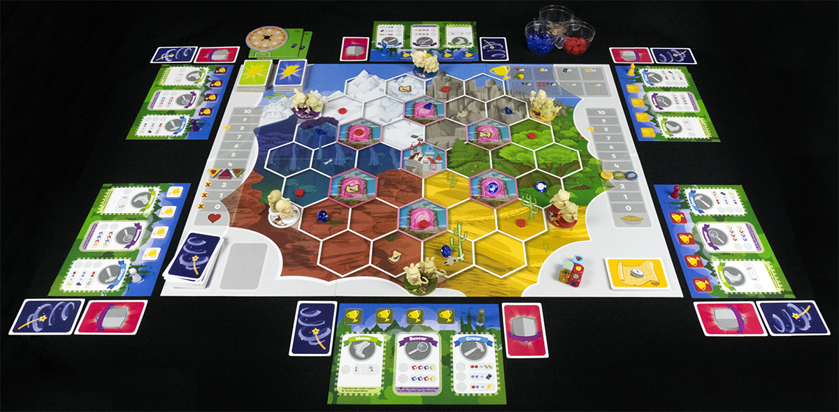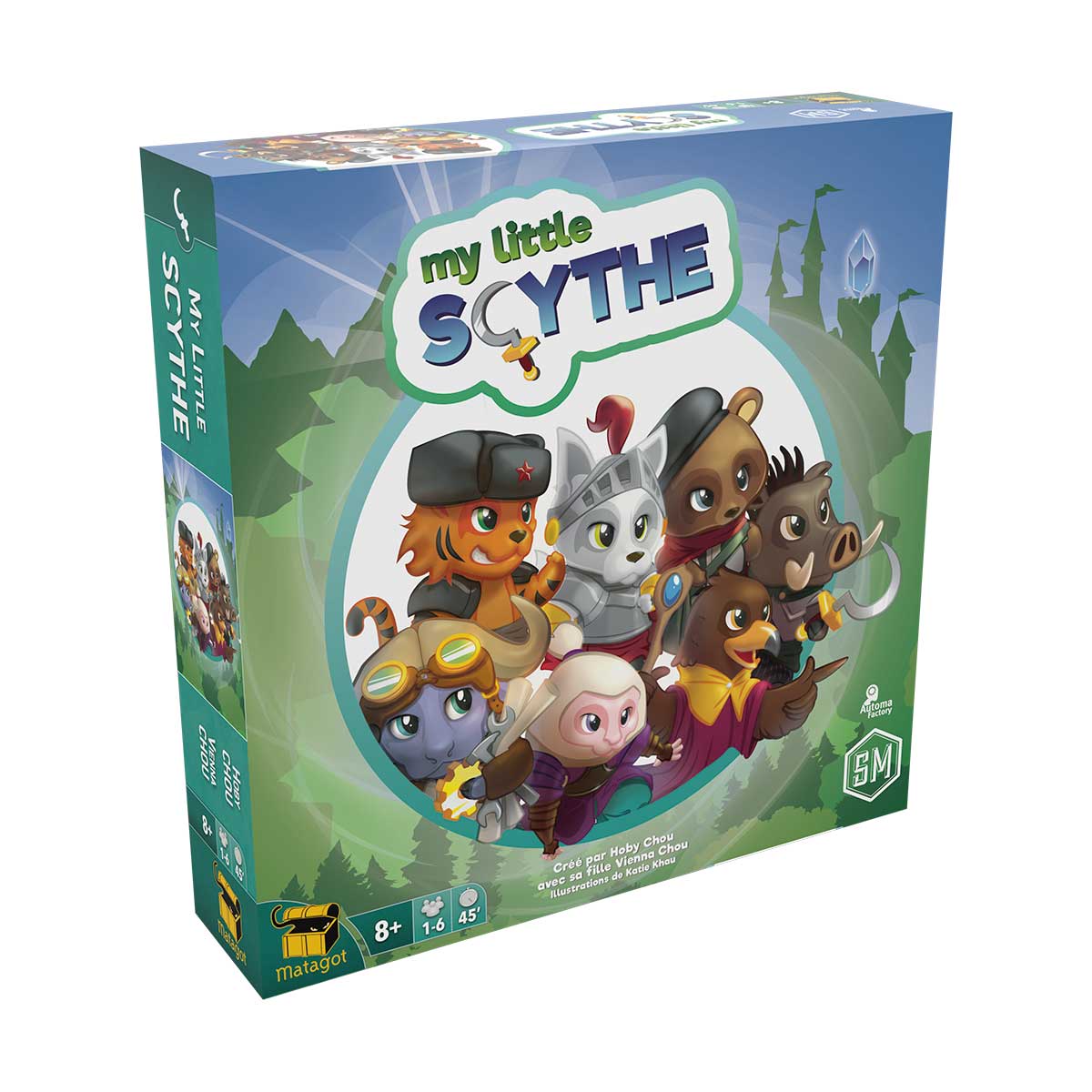 My Little Scythe es un juego competitivo y familiar en el que cada jugador controla 2 miniaturas de animales que se embarcan en una aventura en el Reino de Pomme.